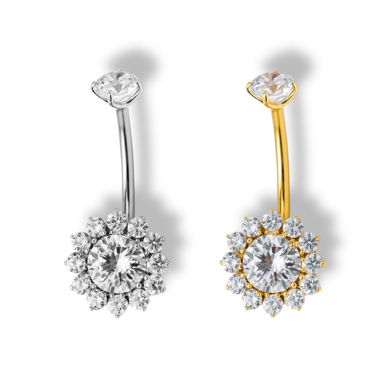 Bauchnabelstecker mit 15 Zirkonia Steinen Blume klein
