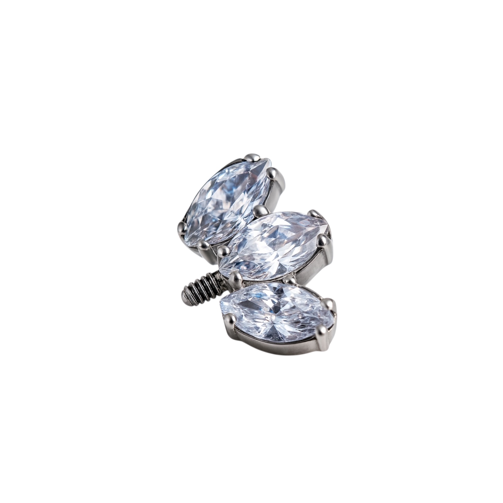 Dieses edle Piercing besticht durch seinen von oben angebrachten Schraubverschluss, der eine sichere und unsichtbare Befestigung ermöglicht. Die drei funkelnden Zirkoniasteine sind in einer harmonischen, geschwungenen Form angeordnet und verleihen dem Schmuckstück eine elegante, moderne Ausstrahlung. Ideal für alle, die ein dezentes, aber hochwertiges Highlight im Ohr tragen möchten.